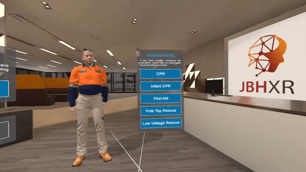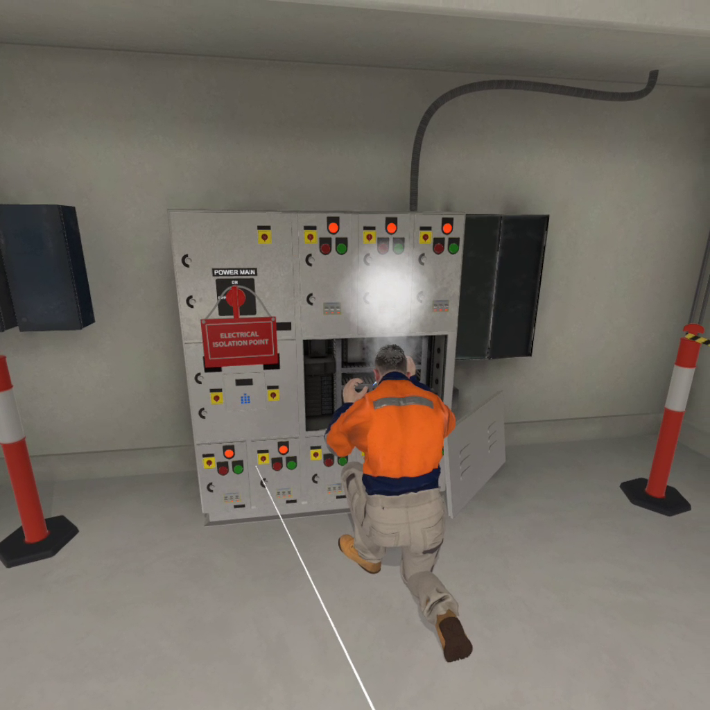 The piece contains five certificate assessment modules for Electrical Supply Industry (ESI) environments which are conducted in virtual reality. Initially developed on the Oculus Quest headset, the final delivery of the experience was built for the Pico Neo 2 headset.